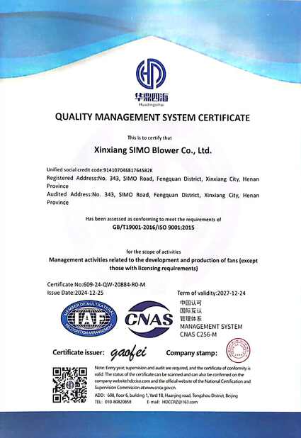 Xinxiang SIMO Blower Co., Ltd. Certifications